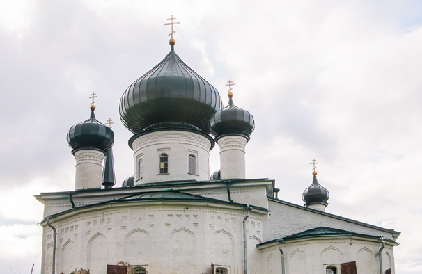 Далее мы полюбуемся Никольским мужским монастырем. Он устроен у Никольского храма, расположенного в полукилометре от Староладожской крепости. Местность, где располагается монастырь, необычная.